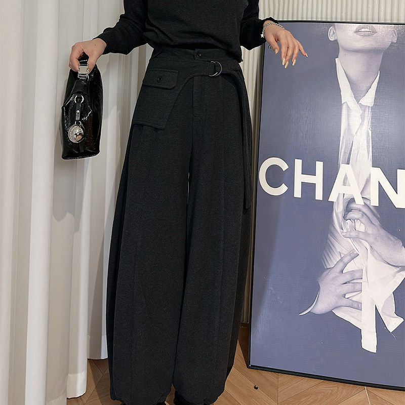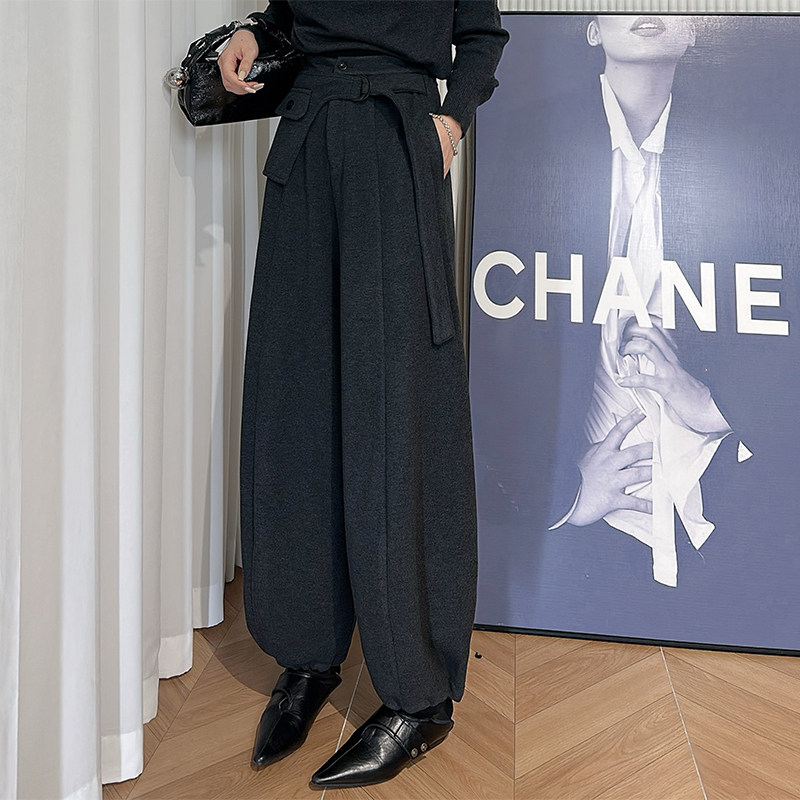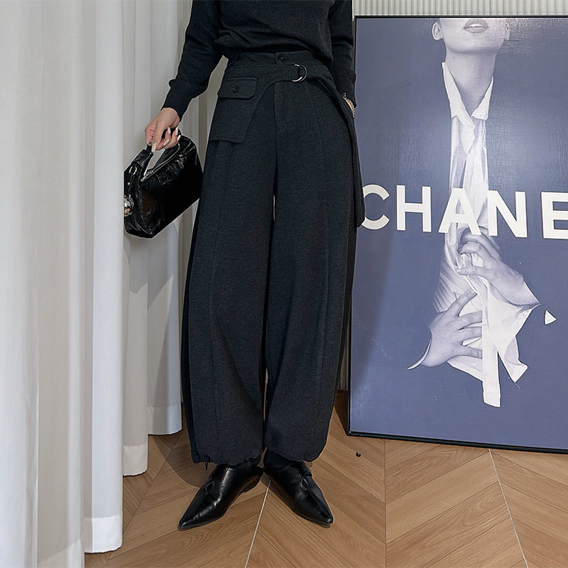 灰色松紧腰小众腰封设计感休闲裤 女 子 暗黑风系带阔腿裤 Dan