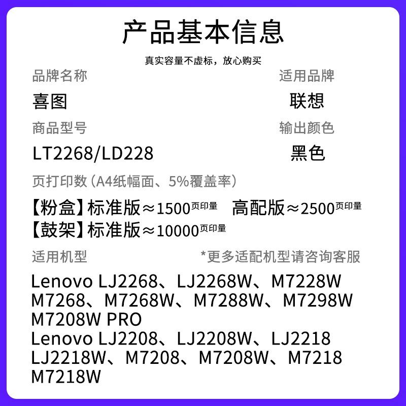 适用联想M7208w硒鼓M7268w LJ2218 LJ2268w墨盒LT2268粉盒M7218w