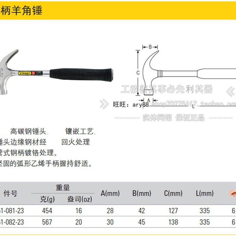 081 20oz 锤子榔头 史丹利工具 082 钢柄羊角锤16oz