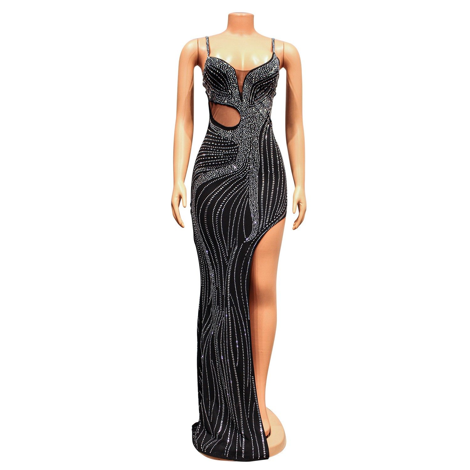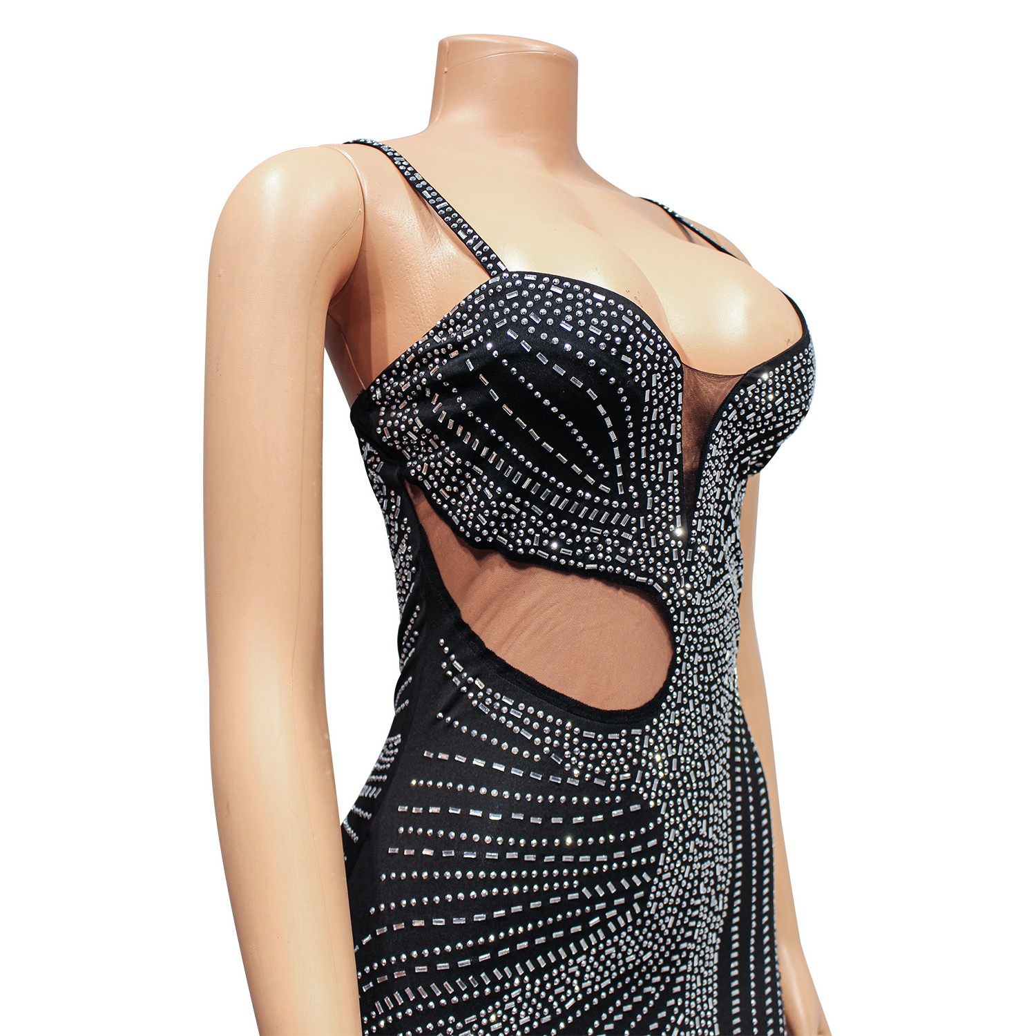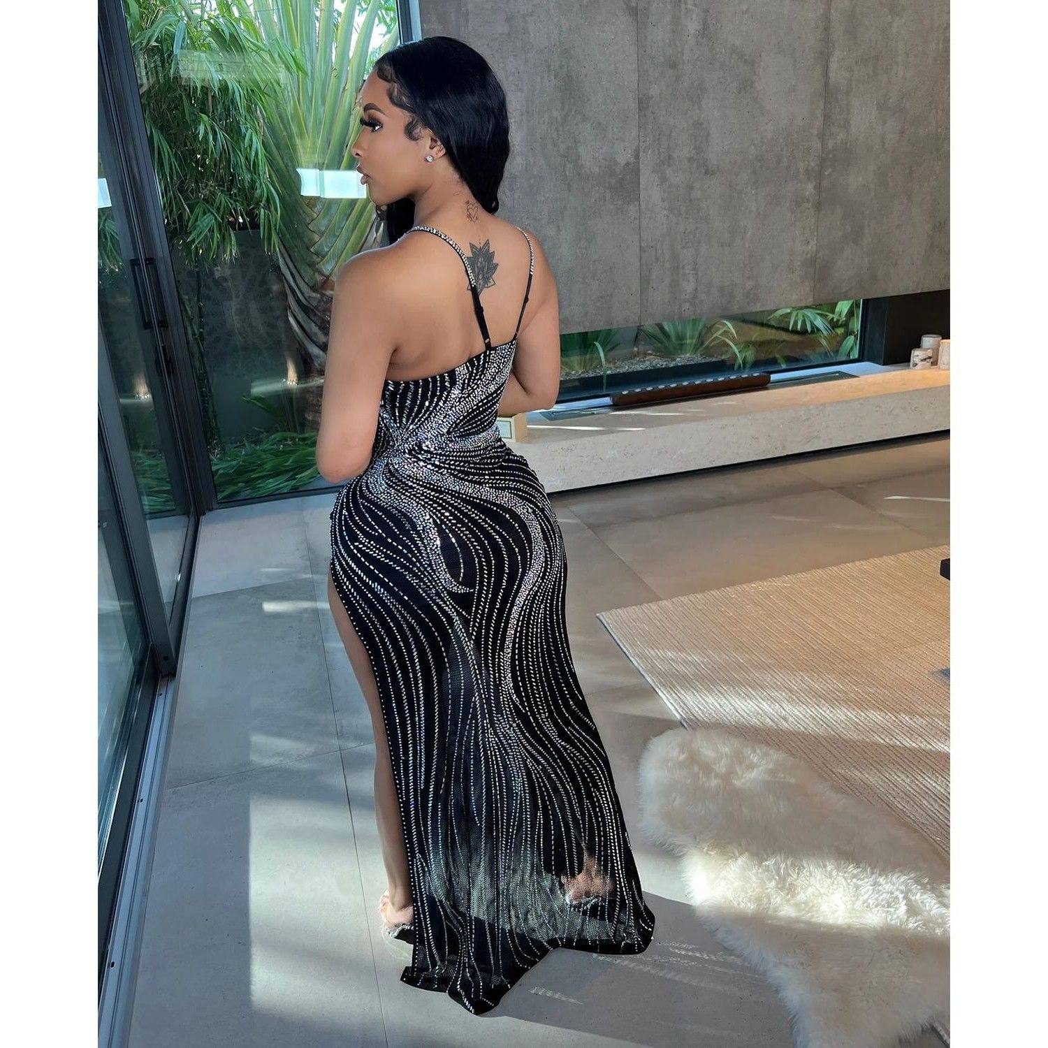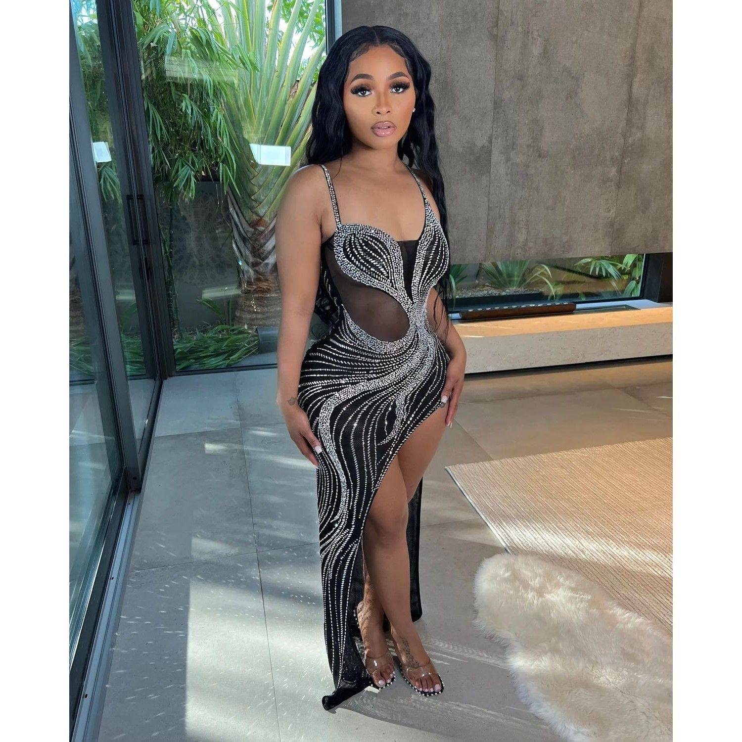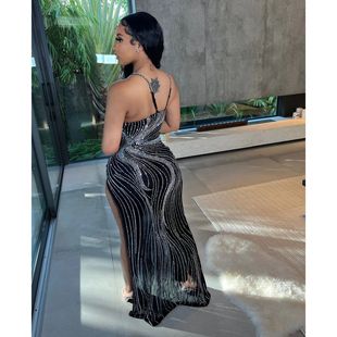性感网纱烫钻夜店吊带连衣裙女 亚马逊欧美女装 跨境夏季 新品