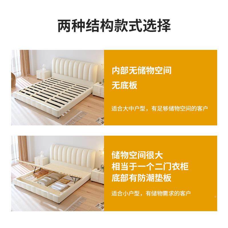 奶油风双人床实床木床卧室大公包家用主风小户型网红MIT软轻奢婚
