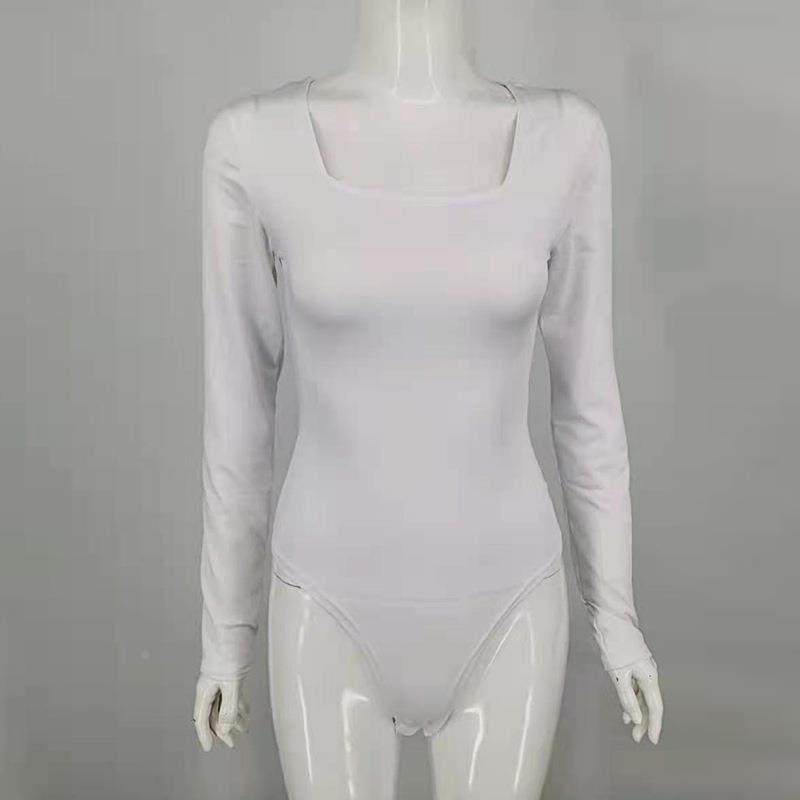 Square Jumpsuit Collar Top 纯色方领白黑连体上衣 Body Solid