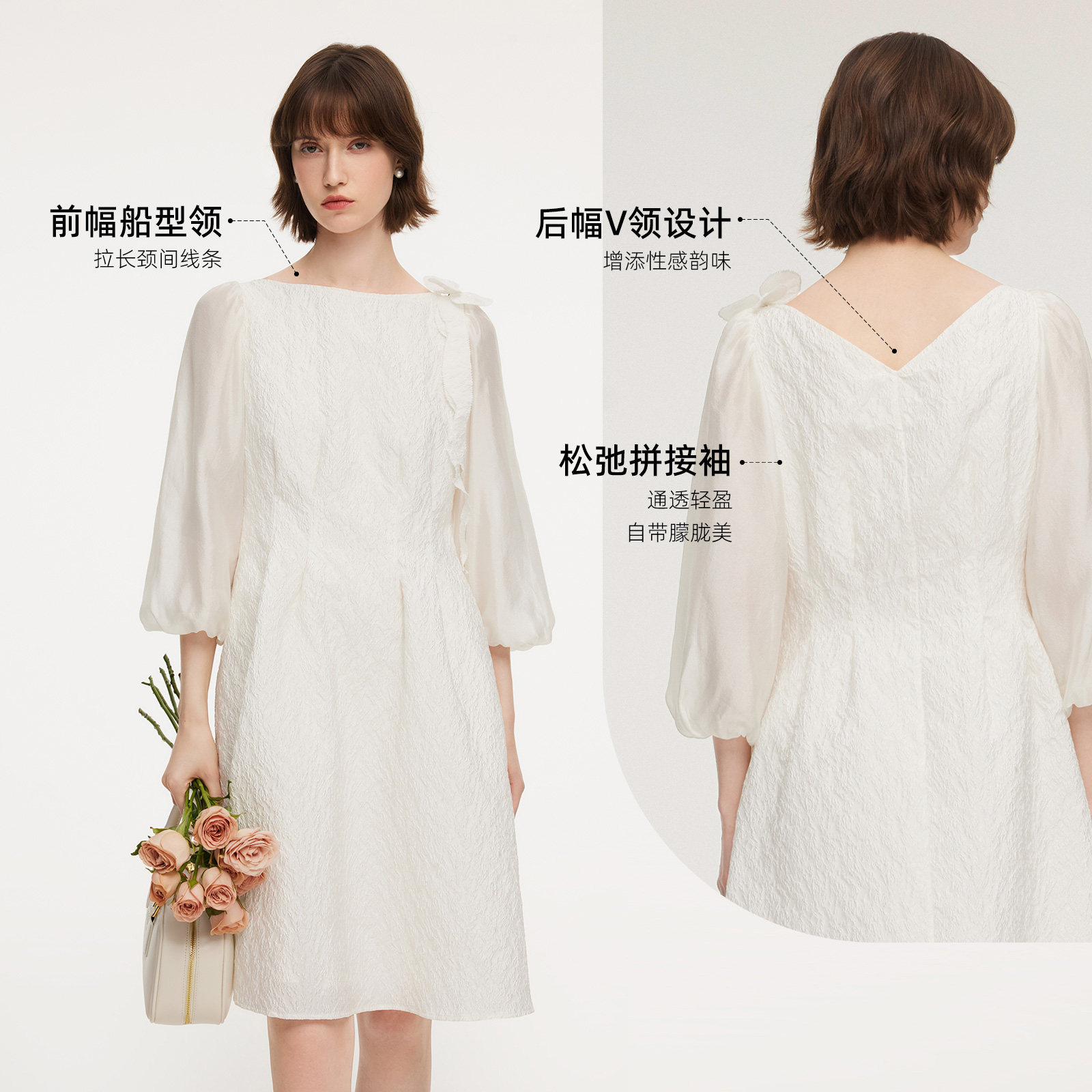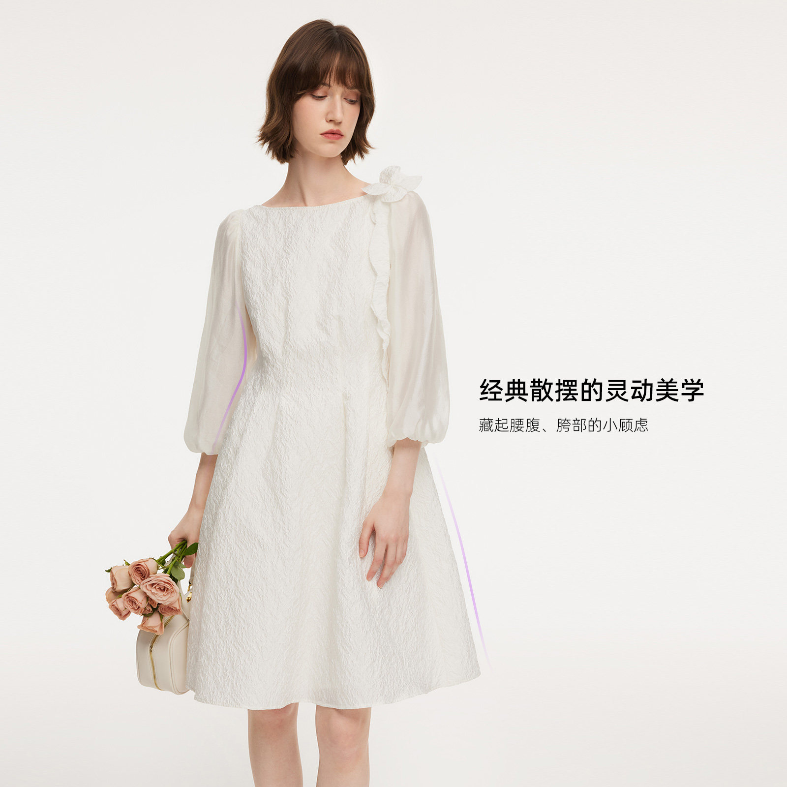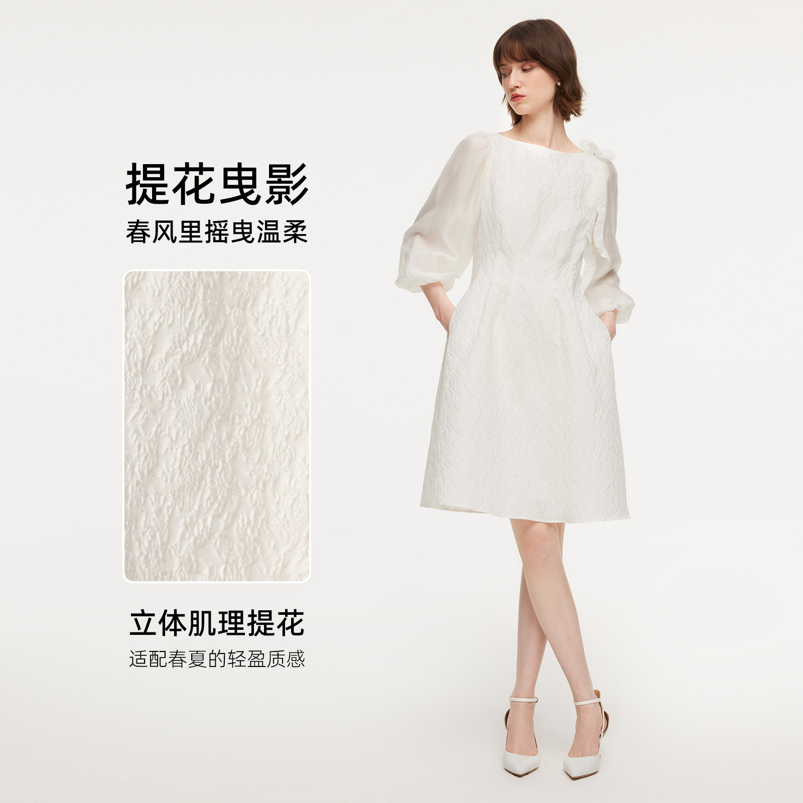 白色裙子 出席重要场合巨好看法式 歌莉娅提花连衣裙女2026新款 春季
