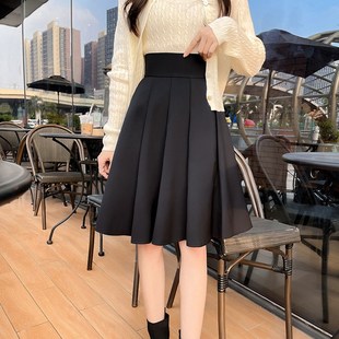 新款 蓬蓬裙半身裙女2022秋季 a字显瘦过膝中裙百褶裙子 中长款 大码