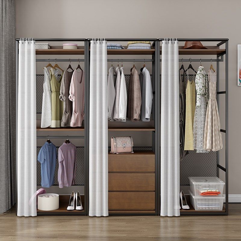 开放式 衣柜置物架铁艺挂衣柜家用卧室衣帽架衣橱衣帽间柜子组合