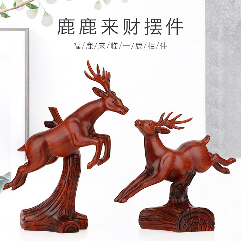 红木马摆件一对马工艺品家居桌面黑檀实木雕刻木质马到成功装 饰品