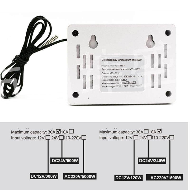 温控仪 W3103数显30A大功率温度控制器12V24V220V温控器壁挂装