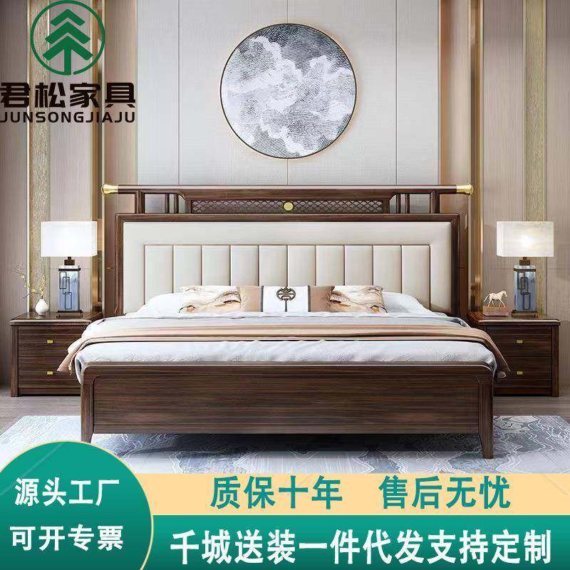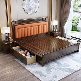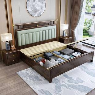 MEI软靠双人现代简约主木卧床1.8米乌1.5米婚床床新中式 金木实储