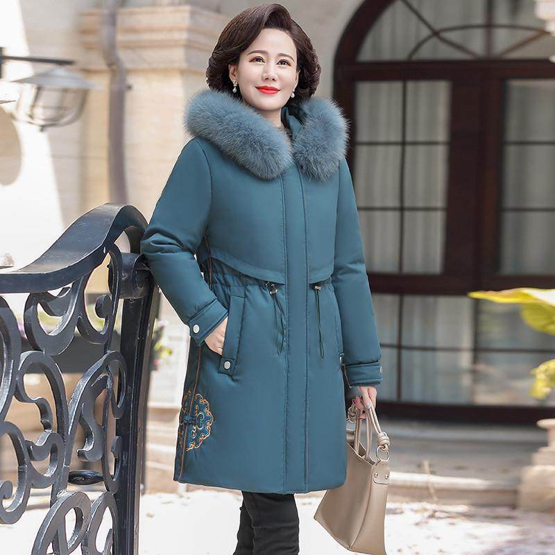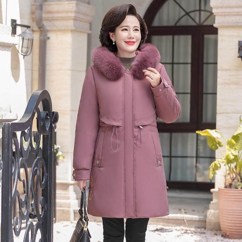 冬 减龄洋气保暖棉服中老年大码 妈妈装 加绒加厚颗粒绒棉衣中年女装