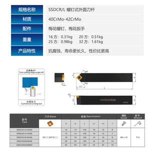 数控车刀具车床机架外圆刀45度刀杆SSDCN2020K09圆车刀杆倒角车刀