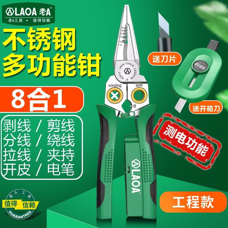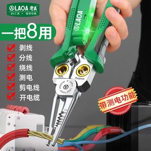 老A 8合1多功能剥线钳剪线拔线电缆剪刀扒线压线钳带测电电工专用