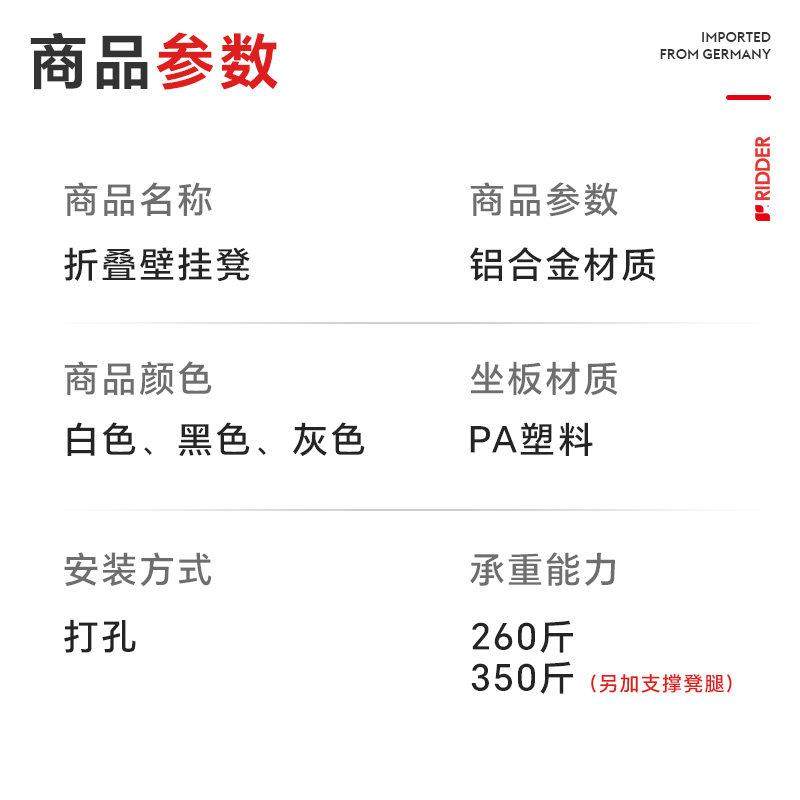 RIDDER浴室壁挂凳椅老年人洗澡折叠凳座椅坐凳防滑摔 德国进口