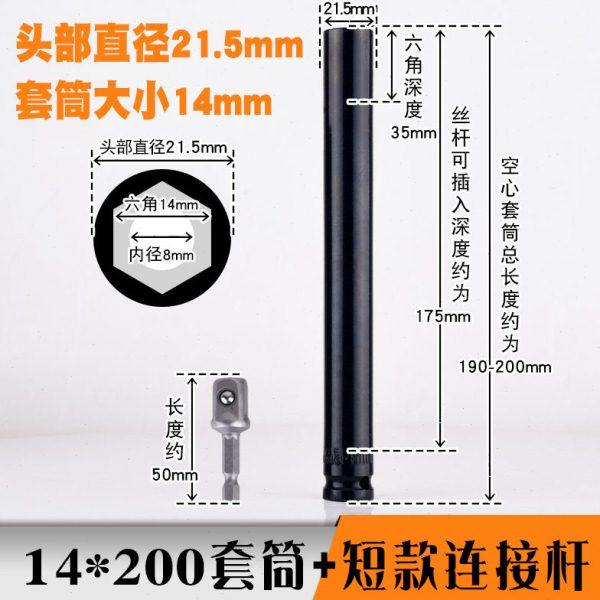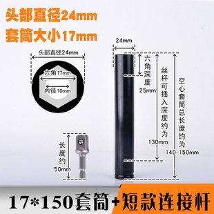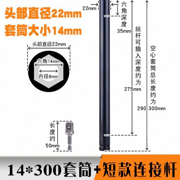 尤优吊顶套筒加长型丝杆14mm17空心螺丝M10电钻m8工具筒吊丝专用