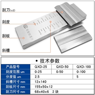 不锈钢QXD刮板细度计涂料油墨细度板单槽刮板细度计0 25um50um100