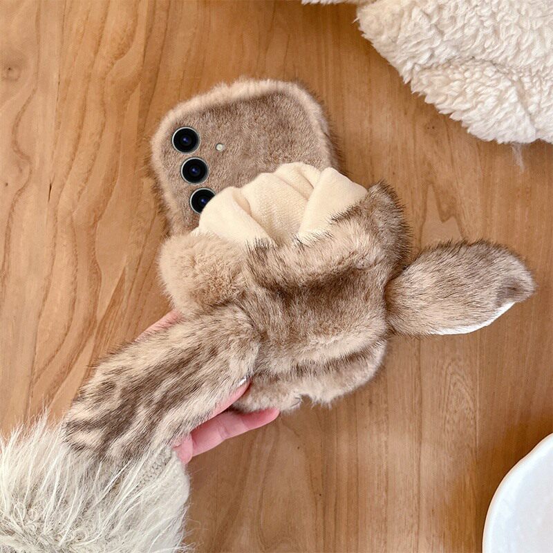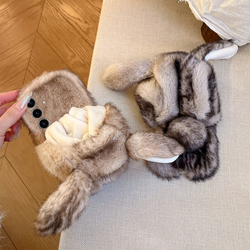 note20 s20ultra卡通s10毛绒s9软s8 帽子兔子耳朵适用三星s25edge手机壳s24plus晕染s23 十s22水墨s21fe秋冬季