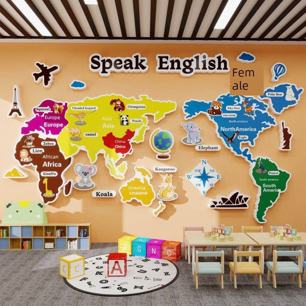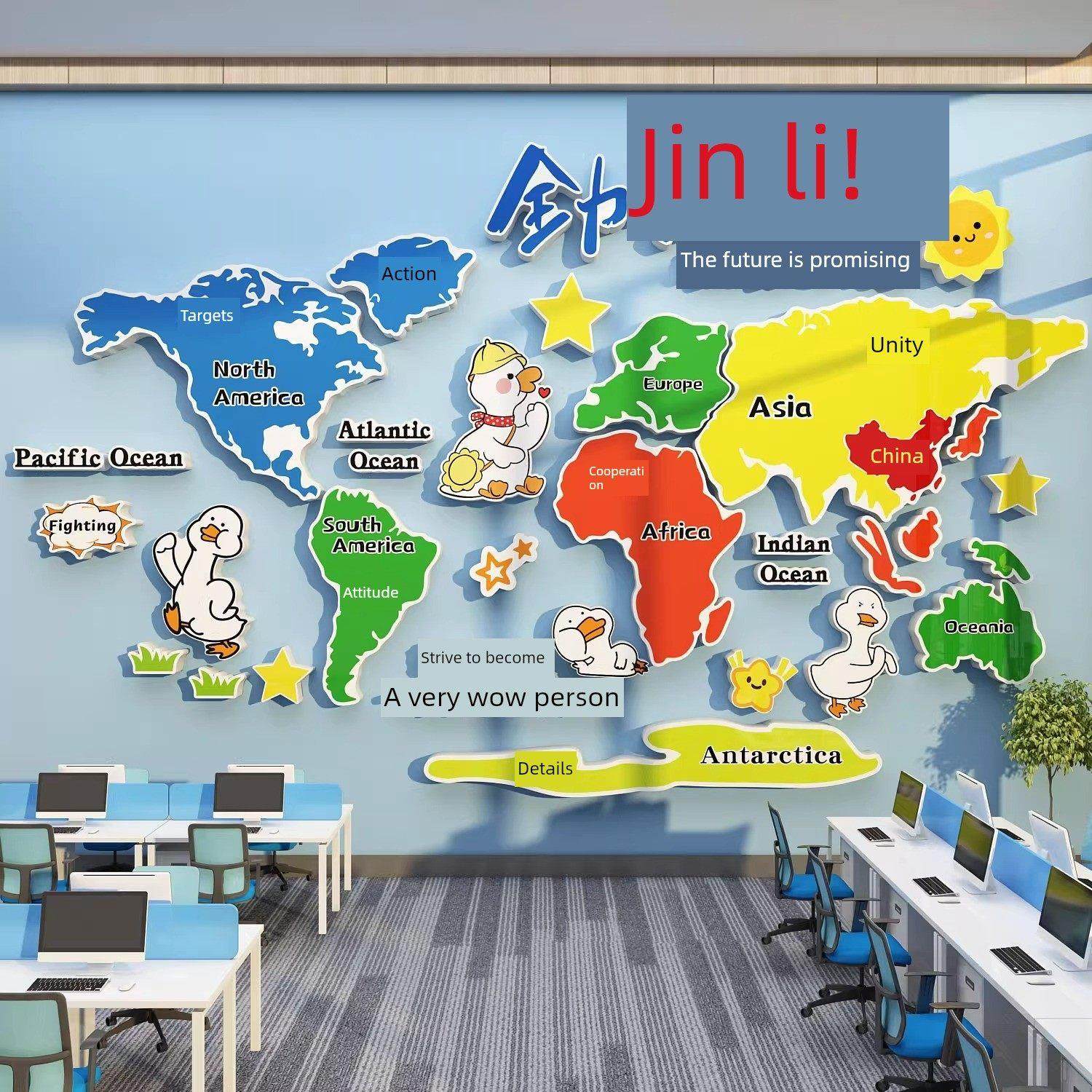 世界地图墙面装 饰3d立体贴画办公室氛围布置外贸公司企业文化背景