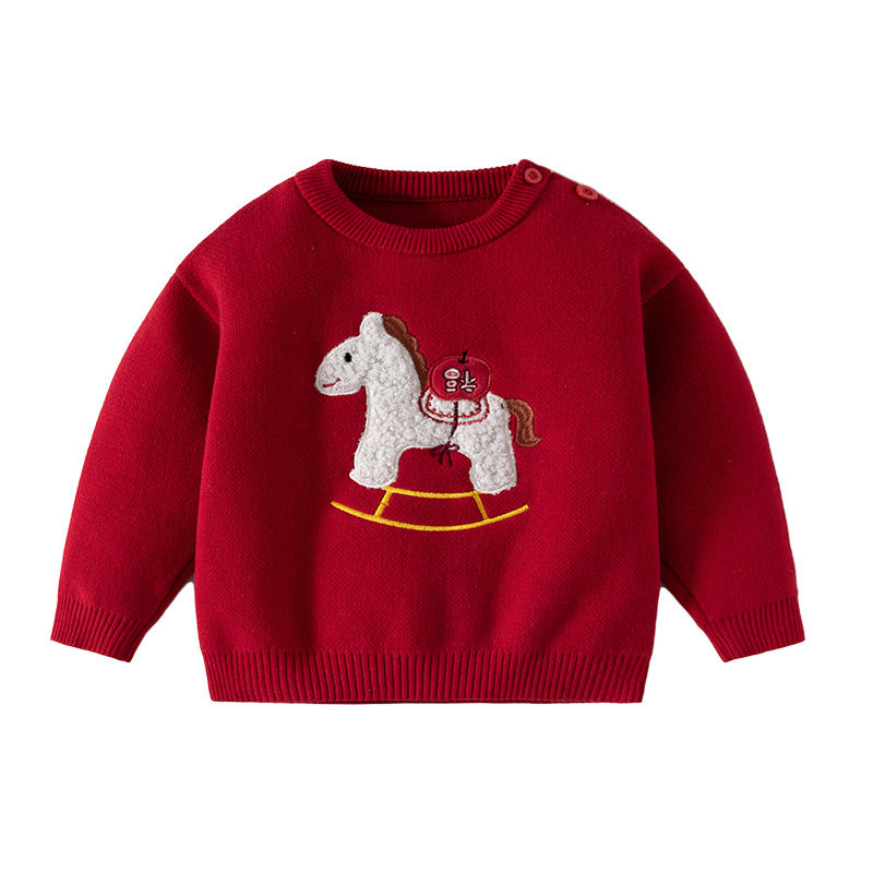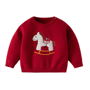 小马送福新年儿童年服波尔多红宝宝毛衣加厚秋冬纯棉A类婴儿毛衣