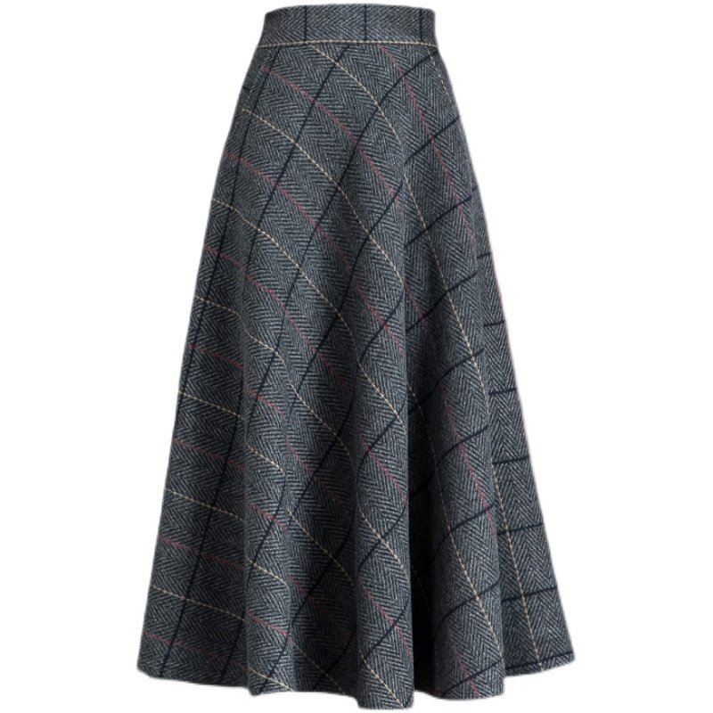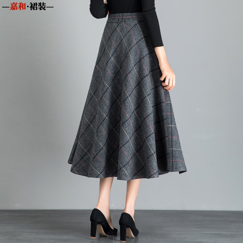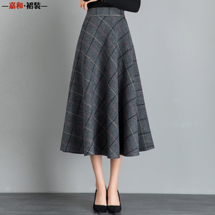 美拉德复古格子半裙大码 胖mm大摆裙显瘦梨型女高腰a字半身裙子潮