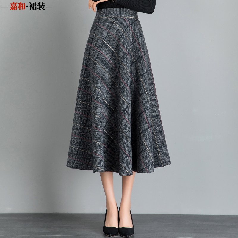 高级灰色毛呢百褶裙女秋冬加厚高腰西装 a字伞裙长裙 半身裙中长款