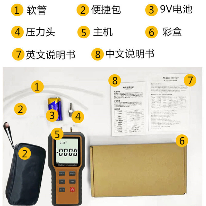 源恒通差压计QX1201 1208数显压力计Pa单位管道压差仪表 1205