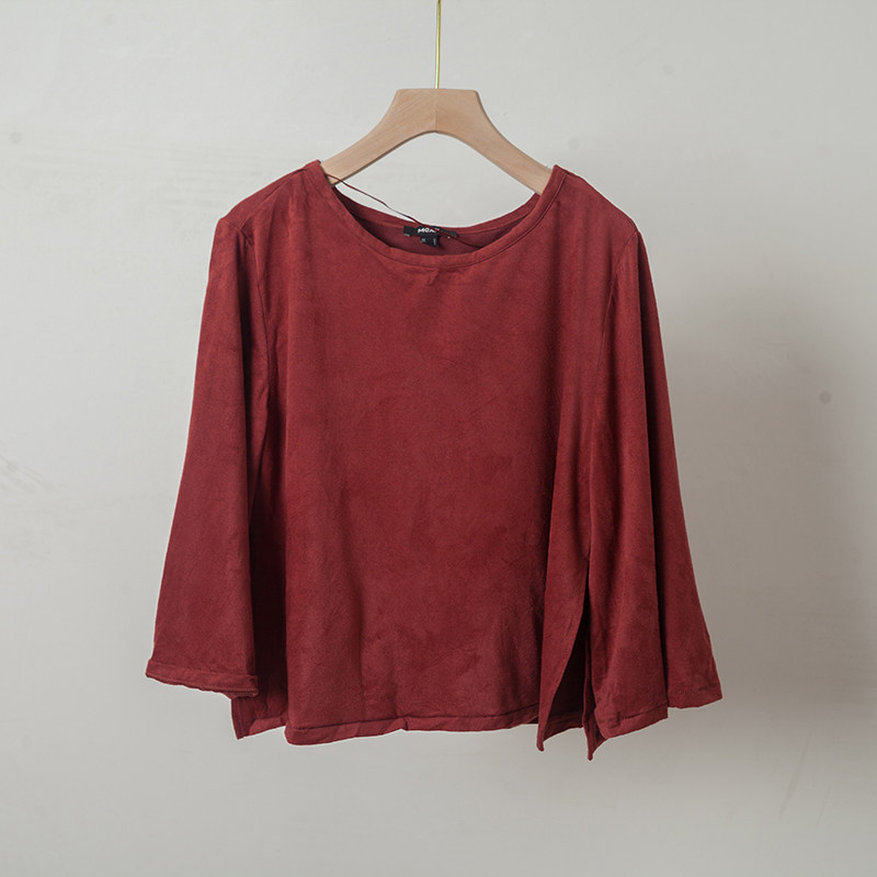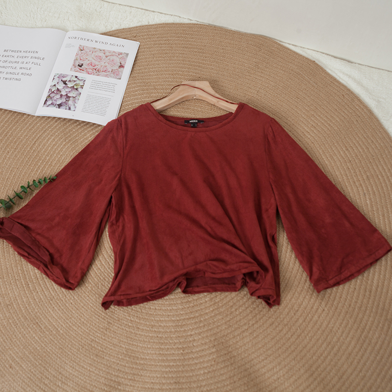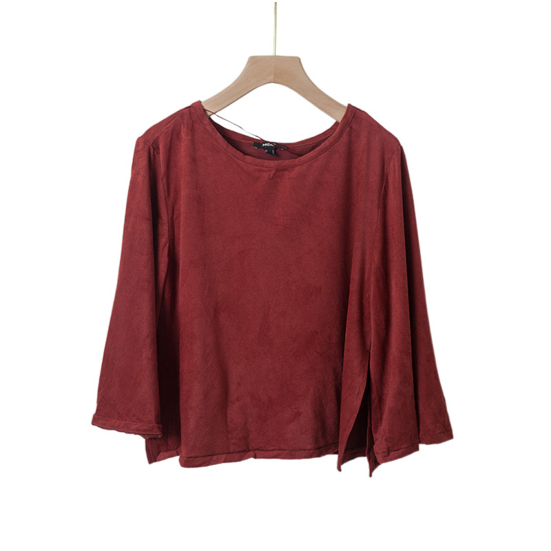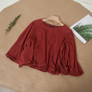 包邮 上衣套头圆领宽松衫 女装 打底T恤鹿皮绒女士气质喇叭袖 夏季 9.9