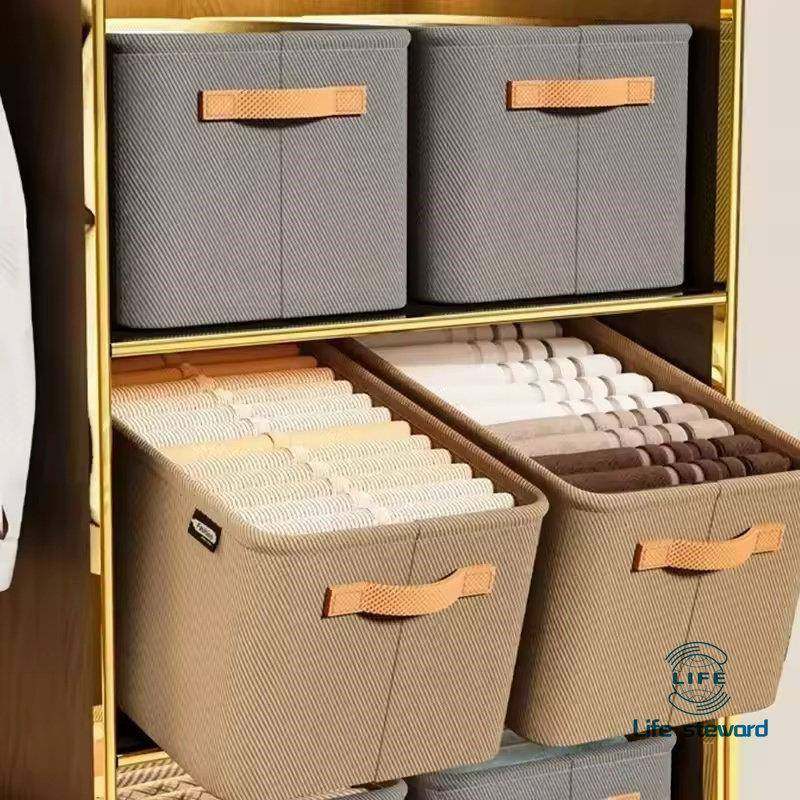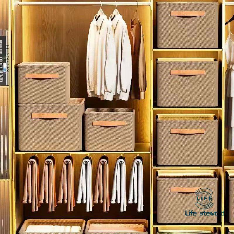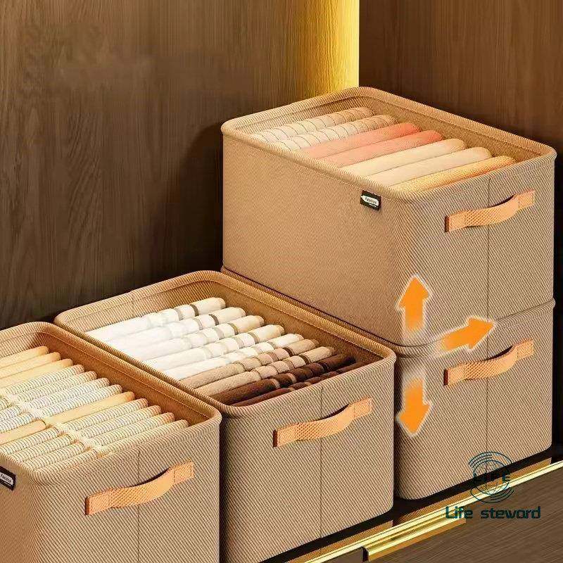 天山棉麻收纳筐衣柜收纳整理分层神器PP板可水洗衣服储物盒收纳箱