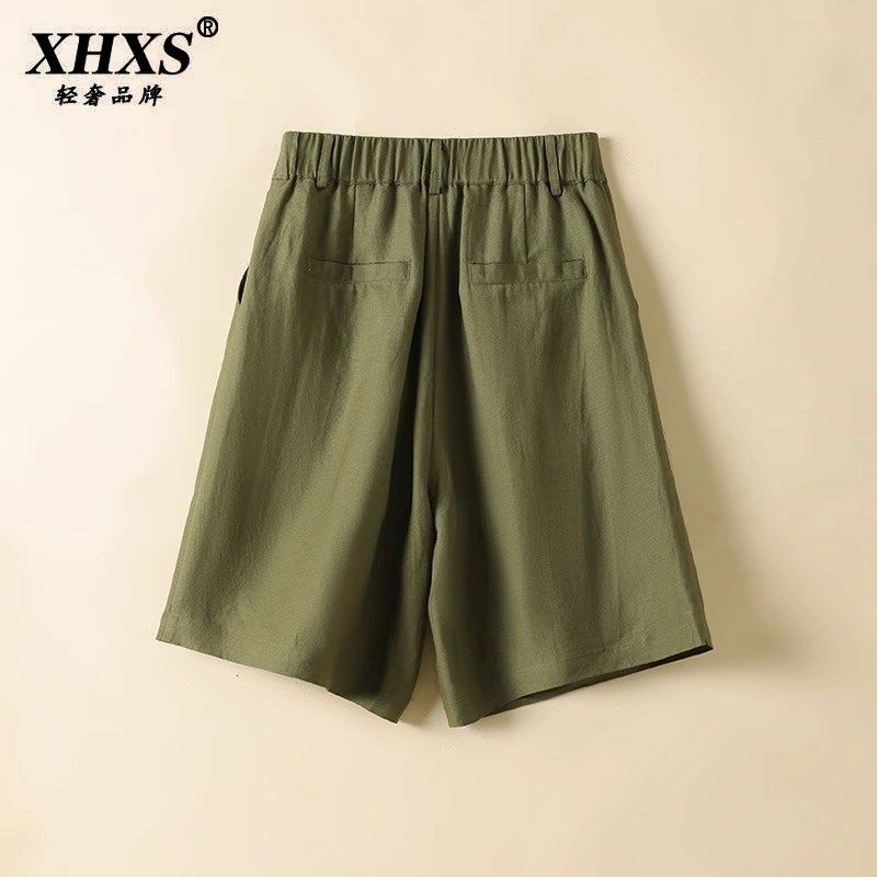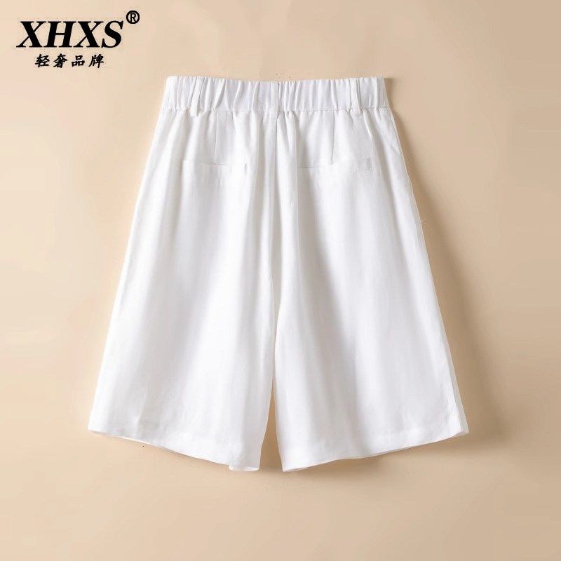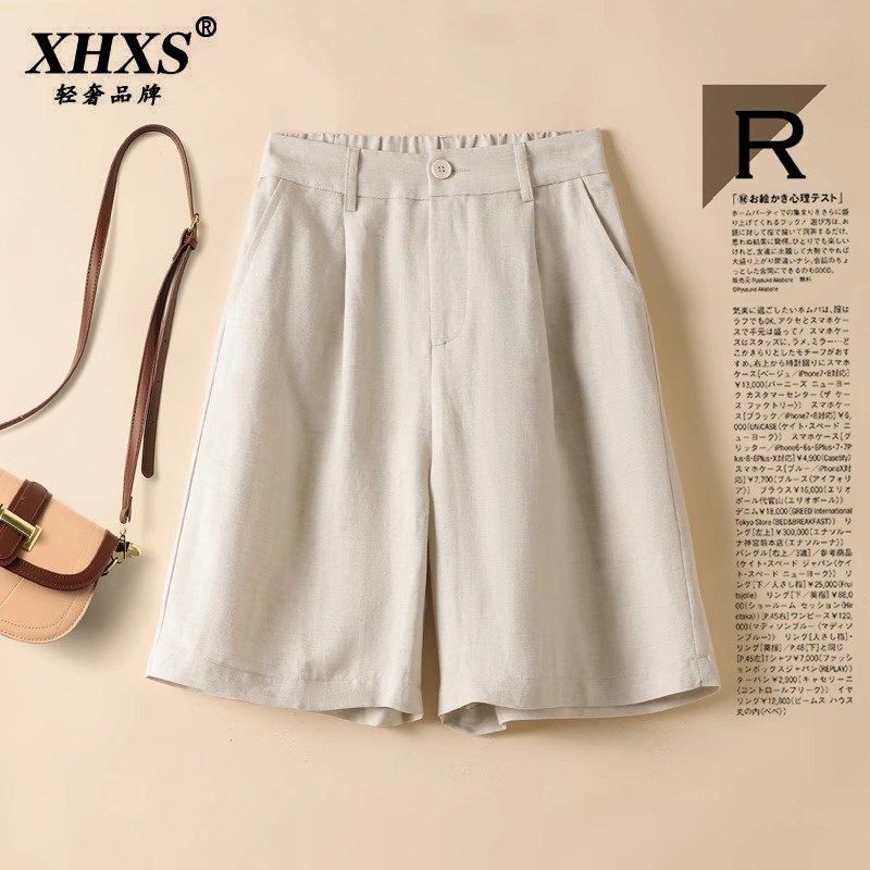 垂感宽松短裤 白色亚麻阔腿裤 2025新款 a字高腰显瘦夏季 子五分裤