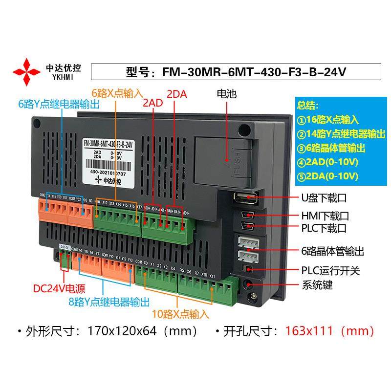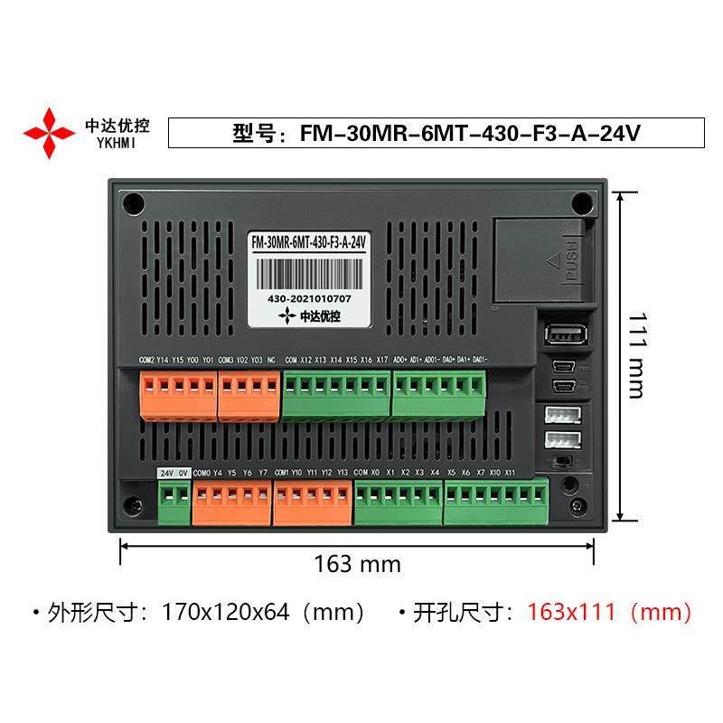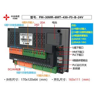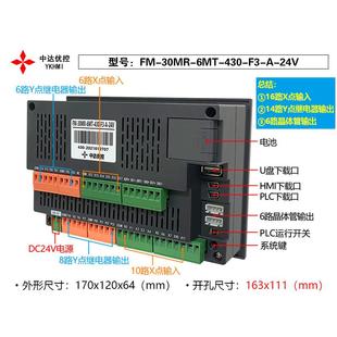 6MT 430 24V 彩色文本PLC一体机FM FX3S 30MR 中达优控