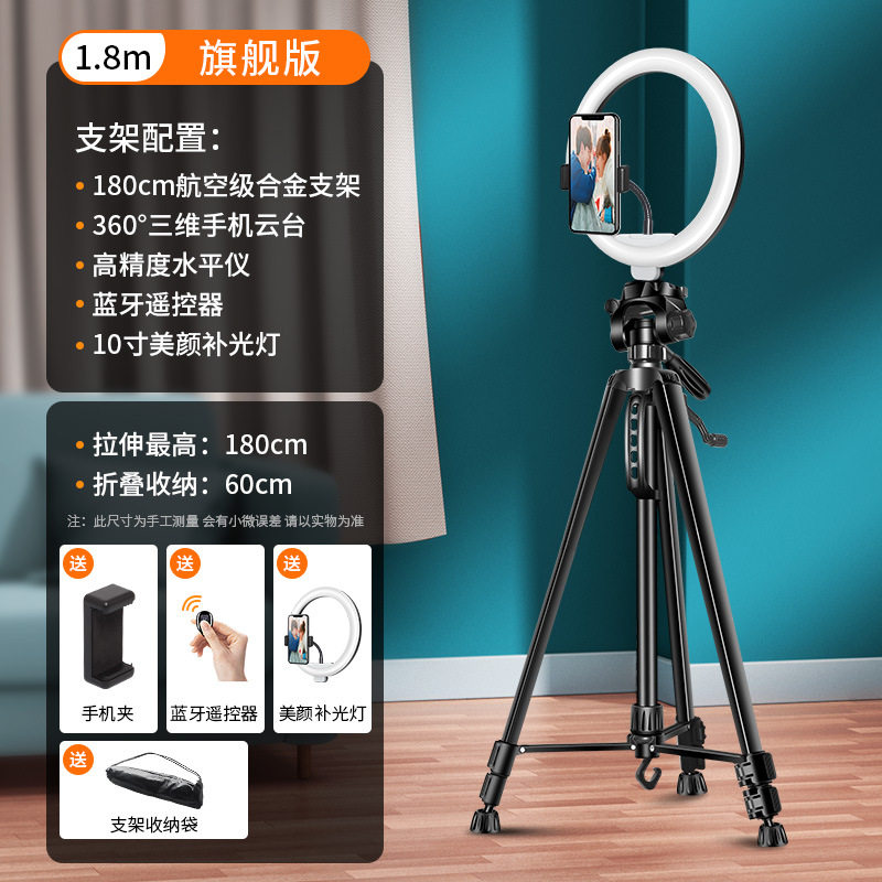 手机拍照直播支架三脚架带补光灯网红拍照专用桌面落地自拍视频拍摄通用考研复试多功能懒人伸缩三角支撑架子