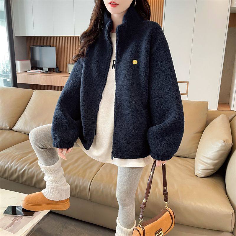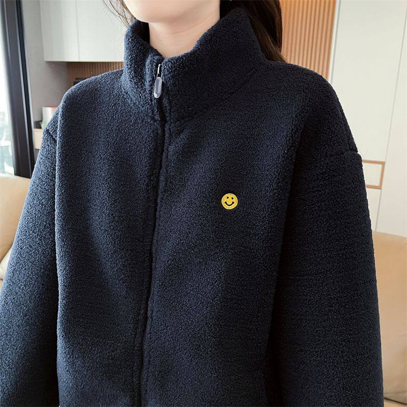 双面米粒绒350克保暖开衫 外套女宽松上衣冬 拉链立领爆款