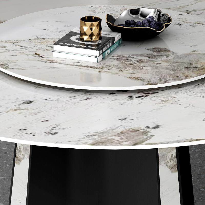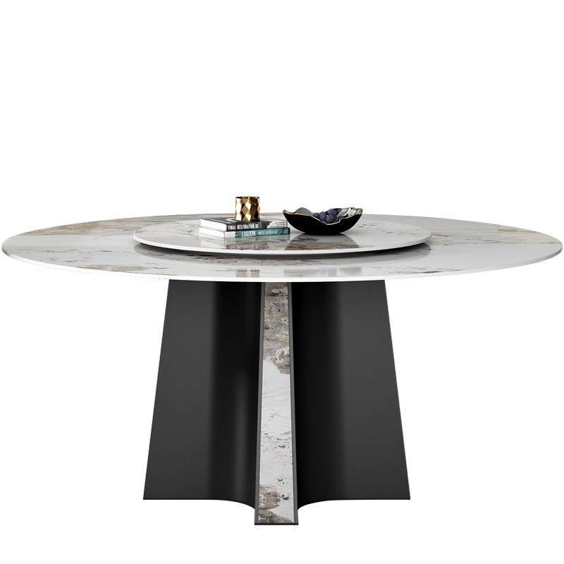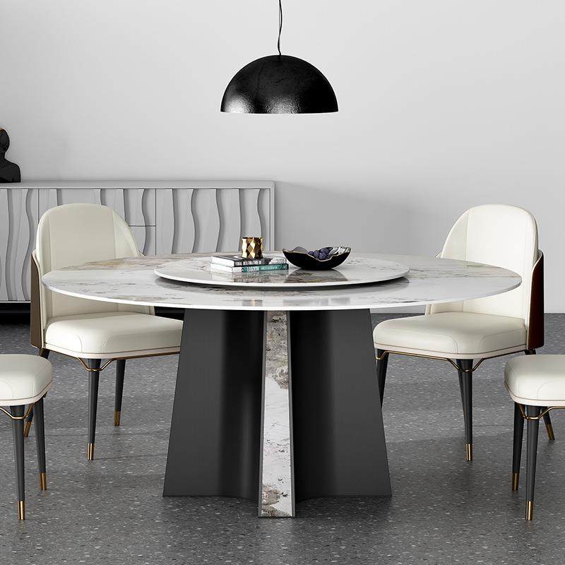 意式 岩板餐桌现代简约轻奢家用小户型黑钛圆桌带转盘饭桌M353
