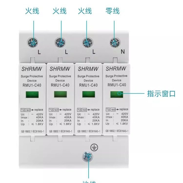 全自动自复过欠40A63AV防雷器浪涌保护器气体放电管器4p浪涌保护