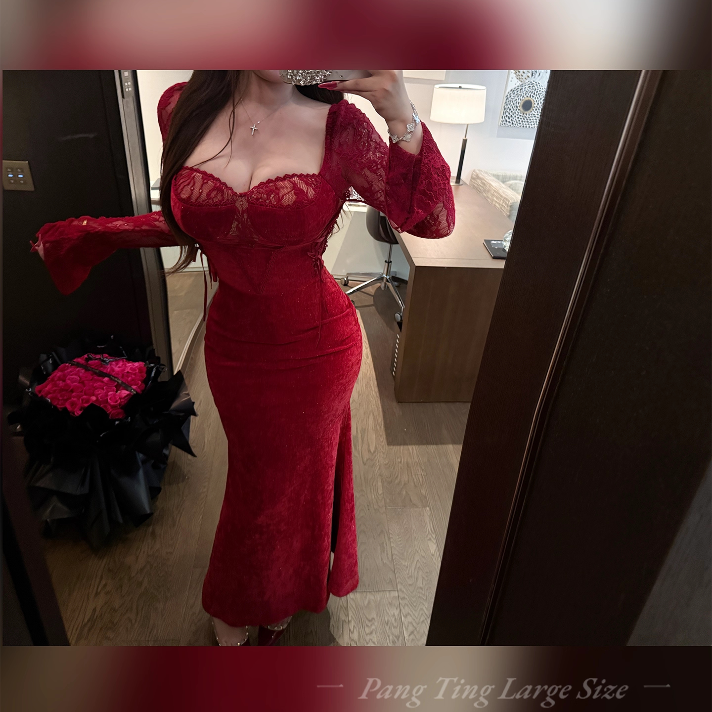 胖婷大码 蕾丝连衣裙性感显身材包臀裙女 定制胖mm「炽热玫瑰」法式
