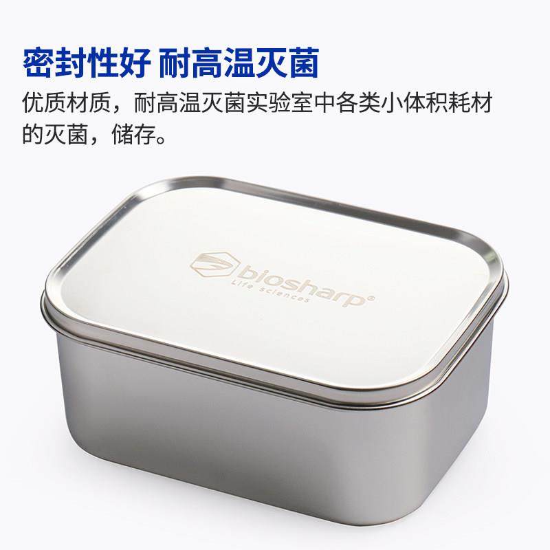 Biosharp白鲨304不锈钢磨砂灭菌盒800ml1400ml1800ml实验室高温铝制灭菌盒离心管吸头高压灭菌盒