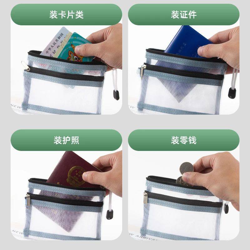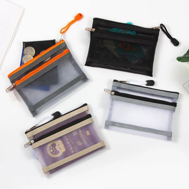 Coin Bag Key Layer Earphon Lipstick Zipper Mesh Double Nylon