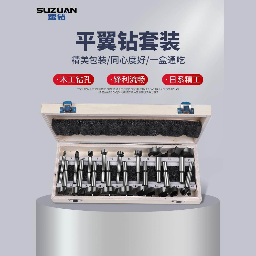 木工开孔器套装 平翼钻门锁铰链钻头桌面木板打孔器15