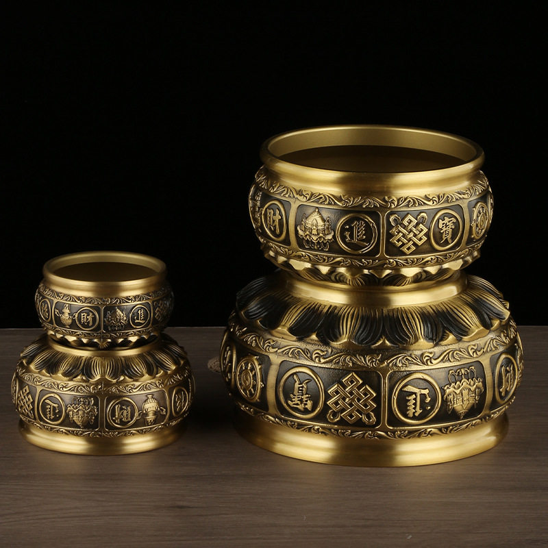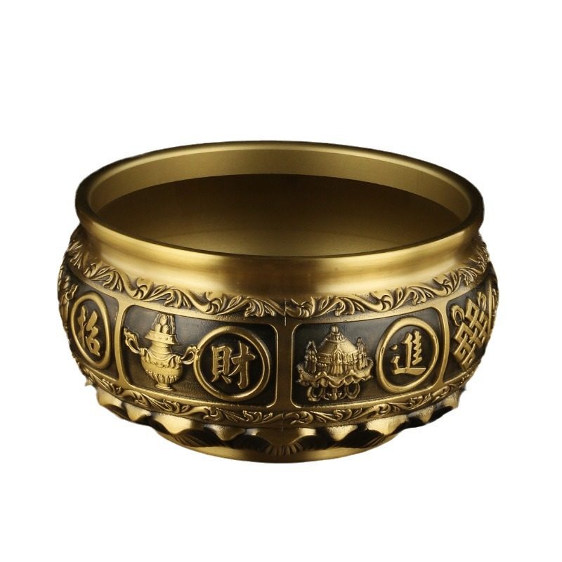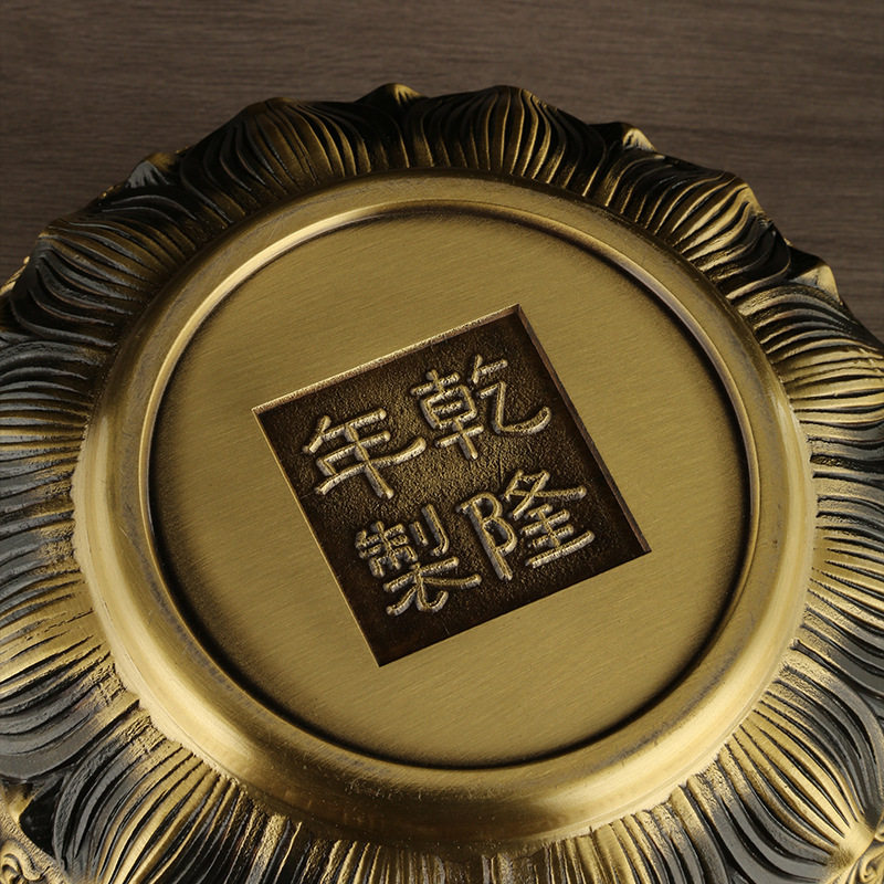 黄铜聚宝盆摆件莲花底座有求必应聚宝盆香炉两用铜盆铜器批发