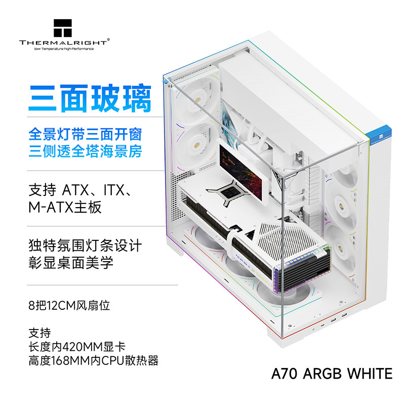 影驰风刃大机箱EATX玻璃侧透背插360水冷TYPEC电竞游戏电脑机箱