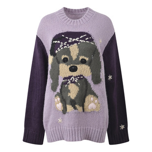 减龄小众毛衣女 套头时尚 2025秋冬新款 设计感嵌花贝雷帽小狗针织衫