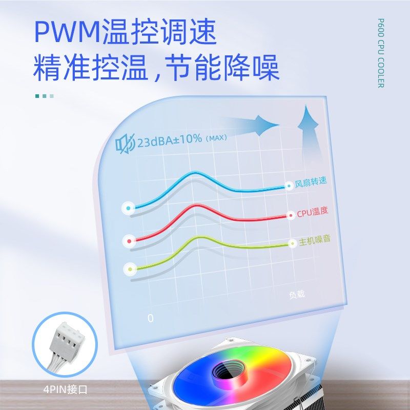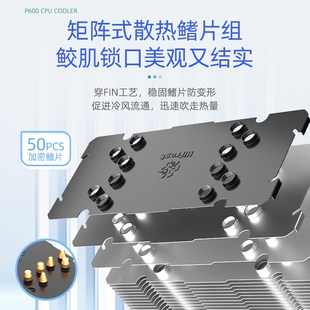 寒霜P600电脑主机CPU散热器六铜管塔式 1700AM45散热风扇 静音1155
