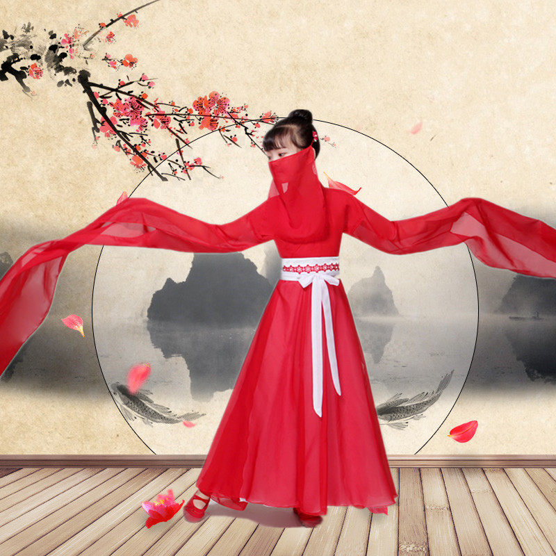 唐宫夜宴儿童演出服表演服唐制唐俑襦裙女童汉服仙裙敦煌舞古风红