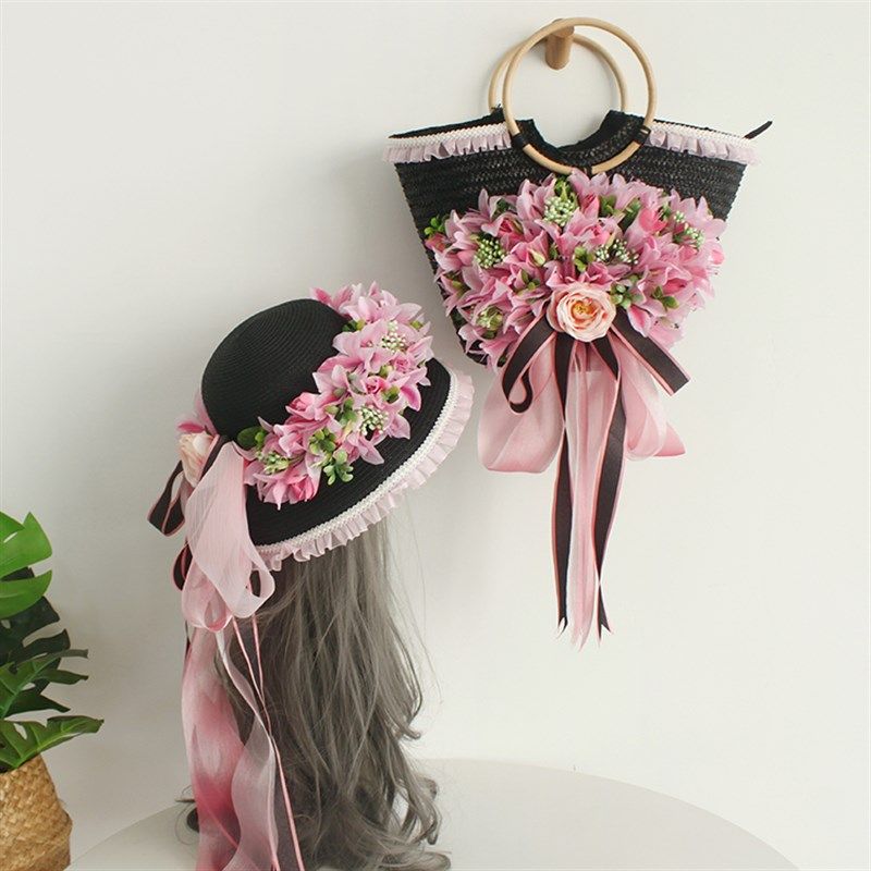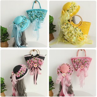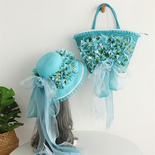 女包夏季 花朵手工度假草编包袋编织包手提包草包海边沙滩遮阳草帽