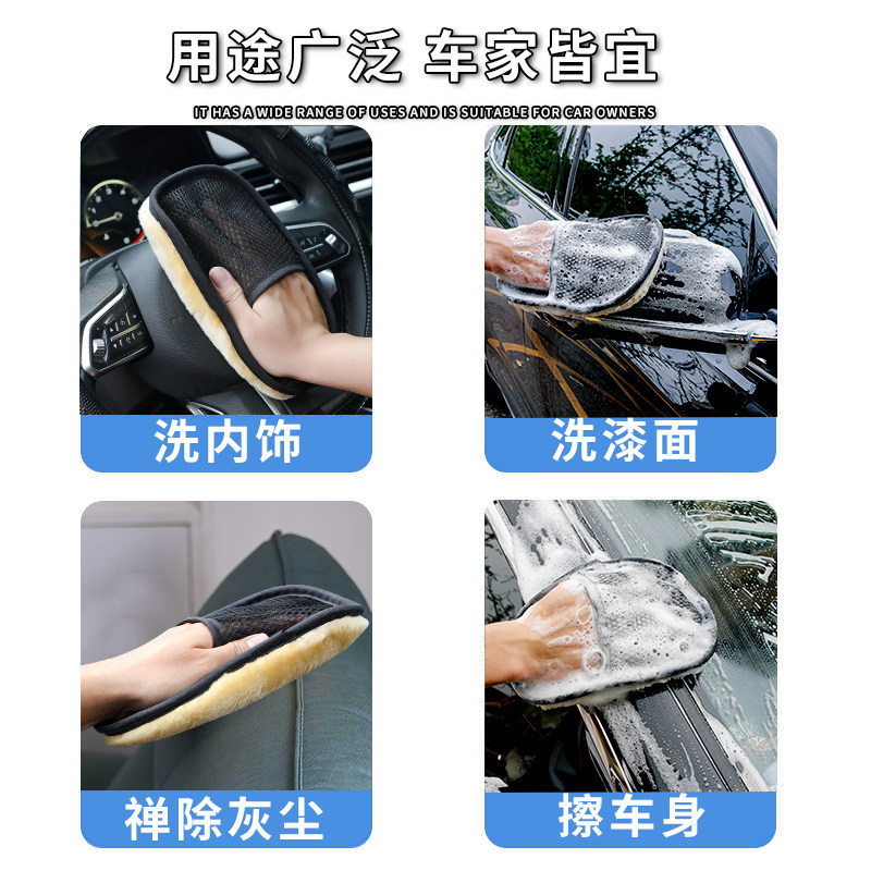 洗车手套毛绒加厚熊掌擦车美容专用不伤漆面不掉毛仿羊毛手掌抹布