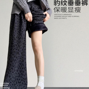 加绒高腰直筒休闲裤 大码 女秋冬新款 300斤ins复古豹纹阔腿裤 胖mm2
