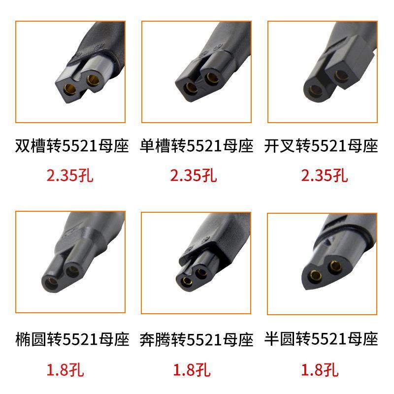 跨境八字转接头适用理发器剃须刀充电转接头5521母座转双孔转接头