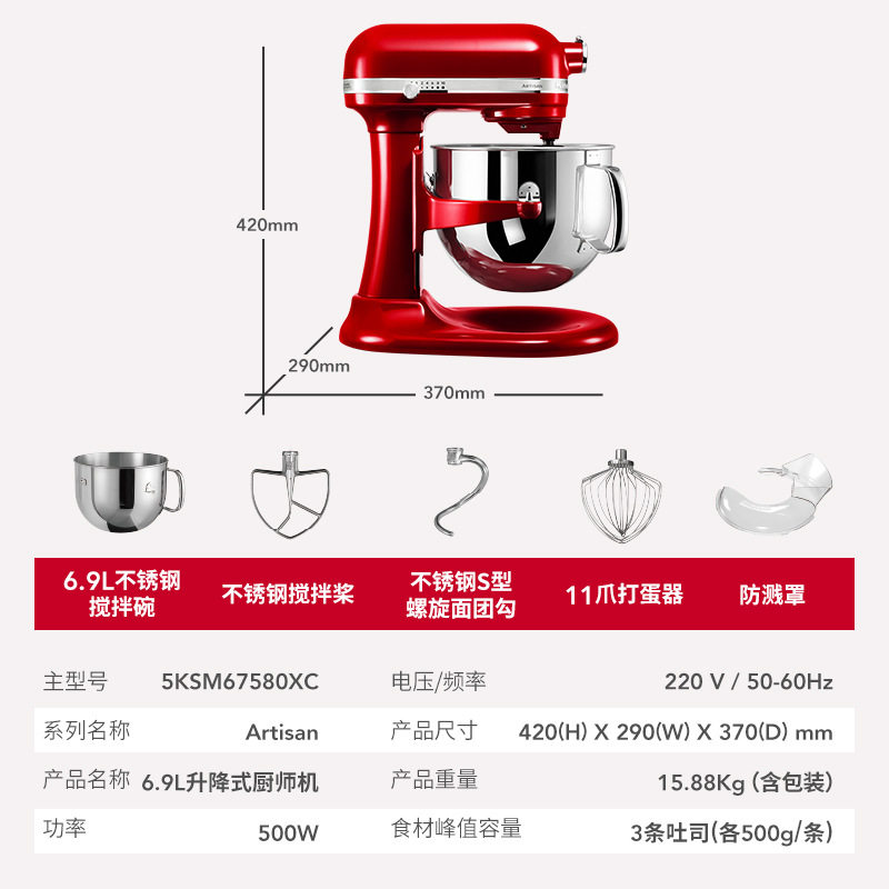 KitchenAid凯膳怡厨师机家用大容量7QT搅拌全自动7580和面机6.9L