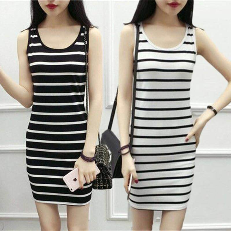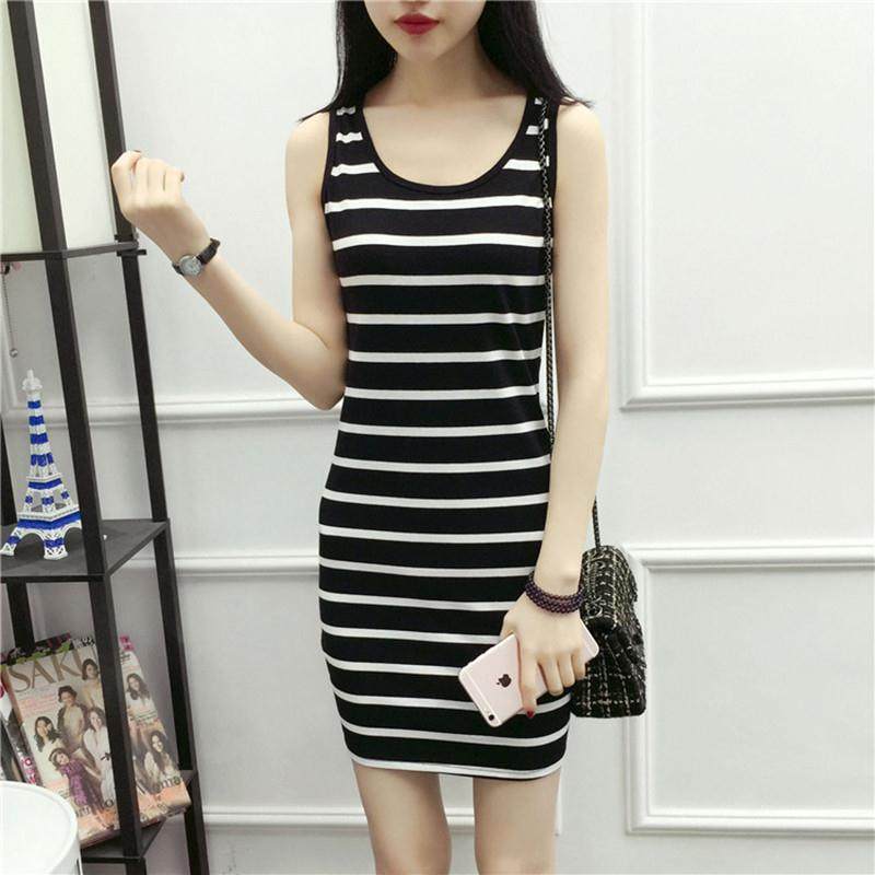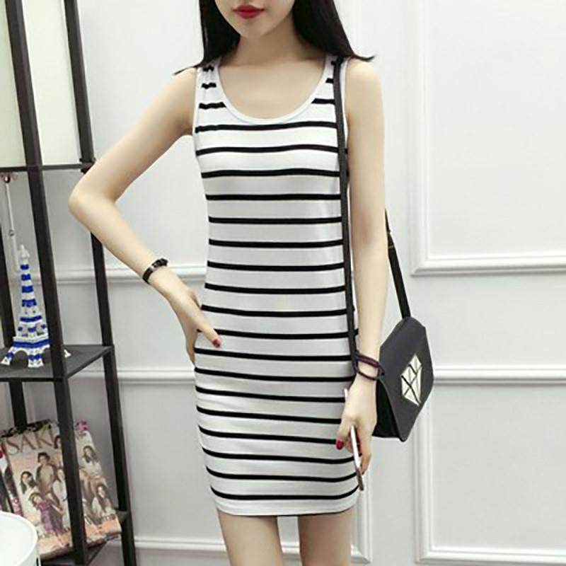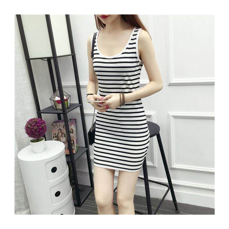 大佬衣服男cd变装 连衣裙伪娘用品女装 显瘦打底背心裙 大码 条纹无袖