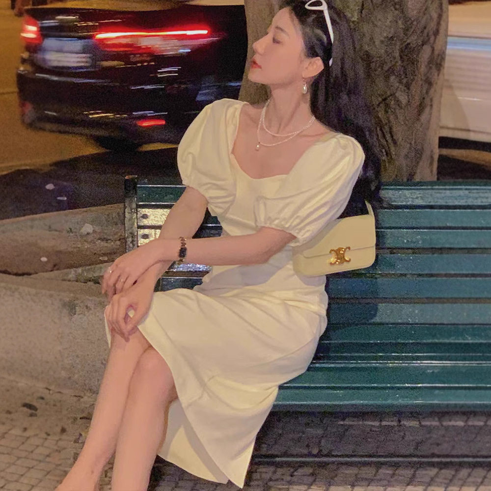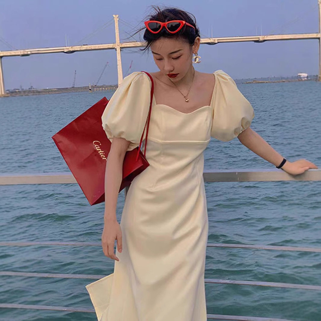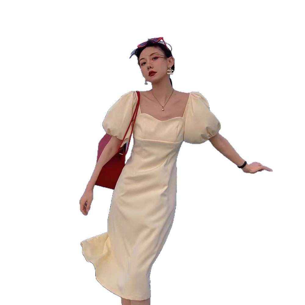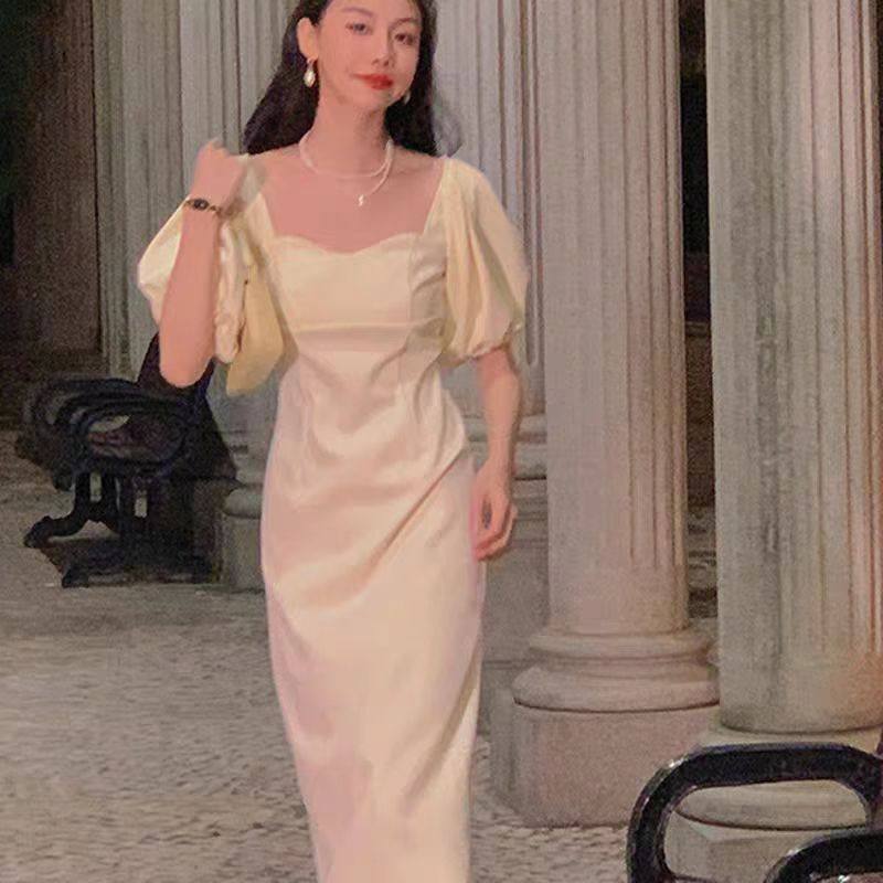 A字修身 鱼尾裙设计感名媛风超仙中长款 显瘦连衣裙轻熟 泡泡袖 法式