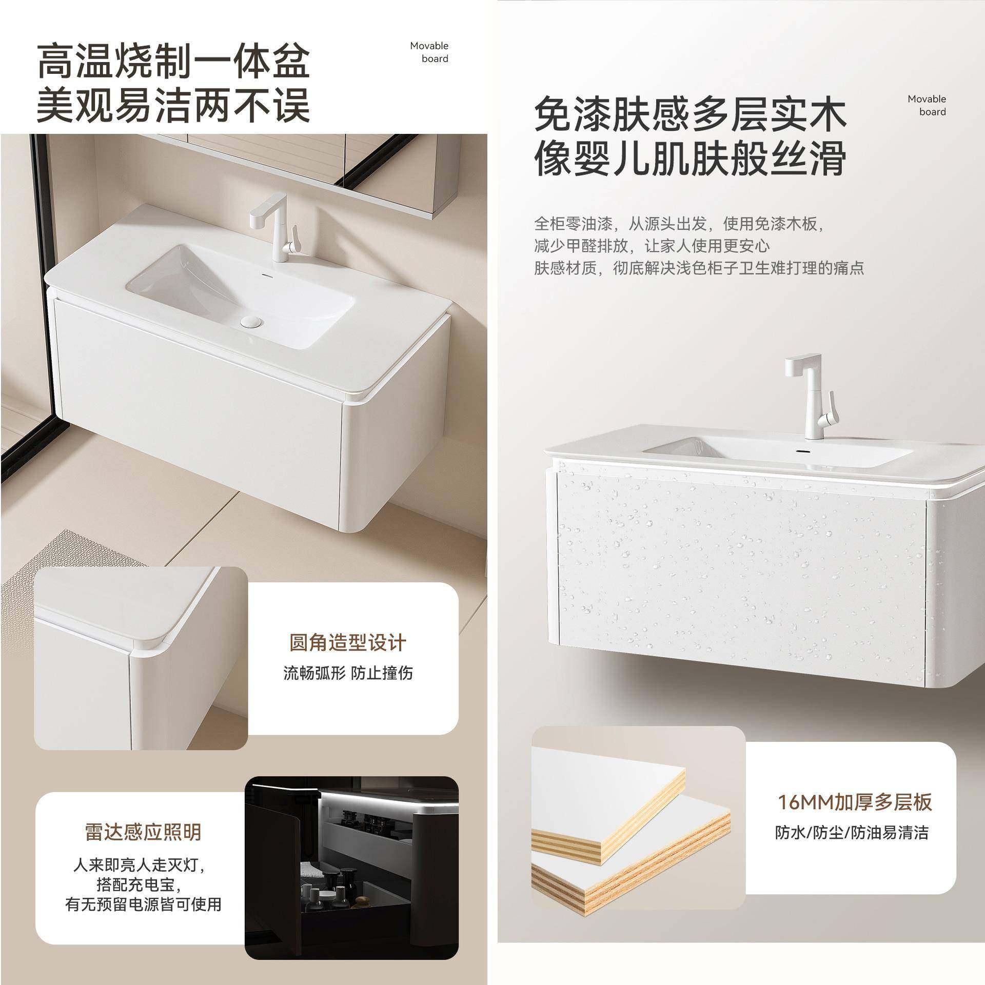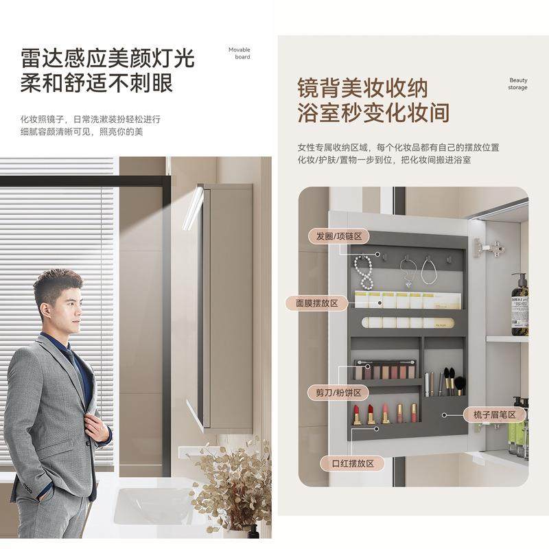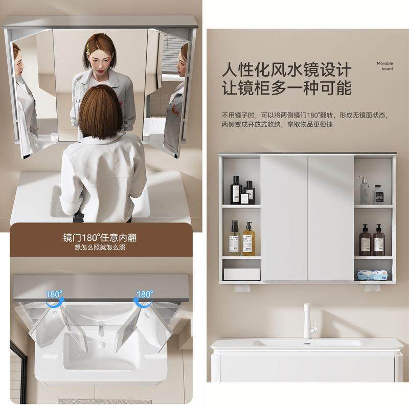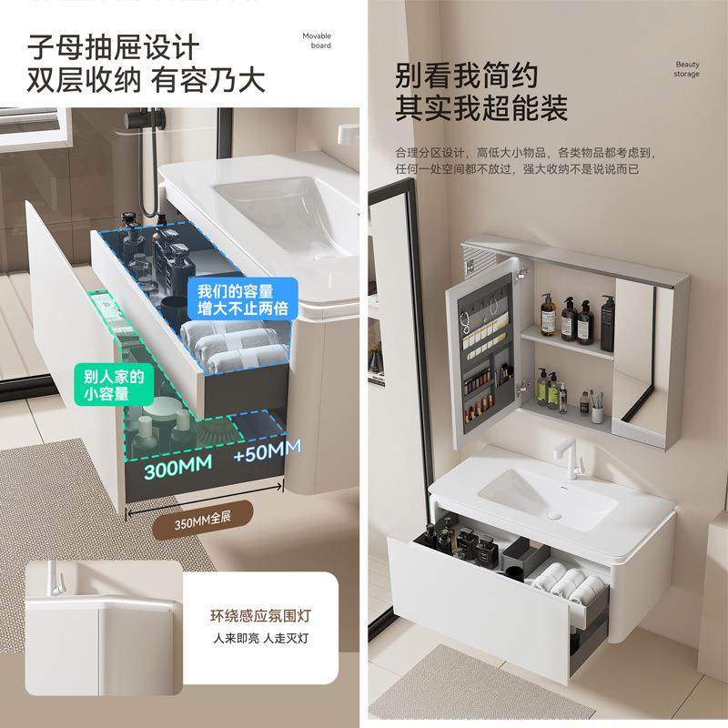 子母抽屉肤感板实木浴室柜纸巾孔美妆架风水镜柜卫生间洗漱台R083