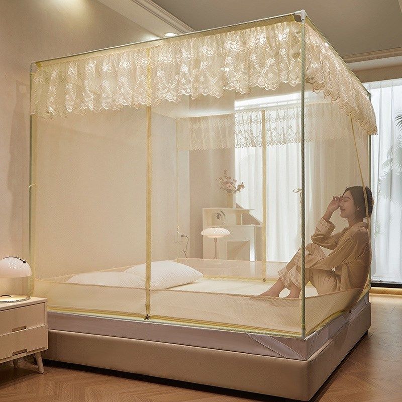 新款 蚊帐1.8米1.0m支架1.2m1.5米家用纹帐三开门卧室落地加粗防蚊